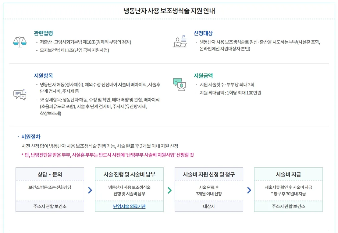 - 시술 실패 시에도 지원 가능 (예 : 공난포, 비정상 난자 등)